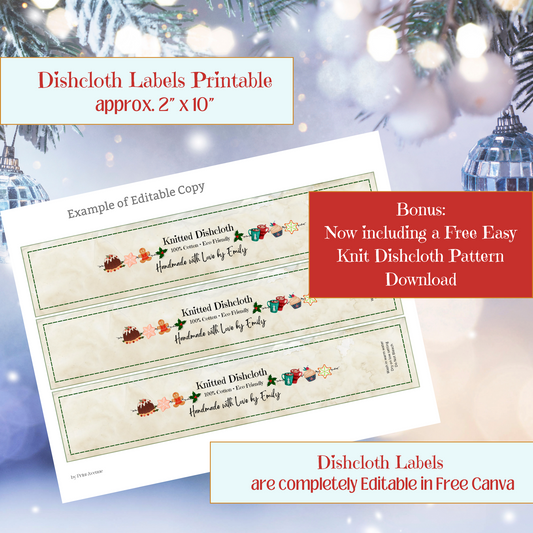 Dishcloth or Washcloth Wrap Labels, Personalize for Christmas - DIY Knit Wash Cloths Tags -Edit in Free Canva •