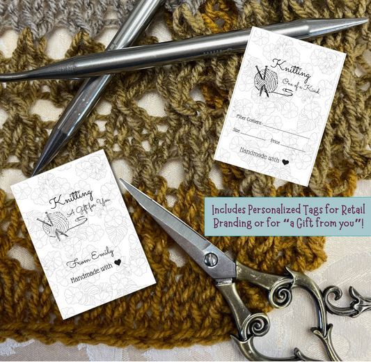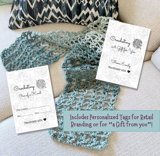 Crochet, Knitting Tags for Retail Branding or for a Personalized Gift Tag and includes Pattern - Easy Lace Scarf Pattern pdf format