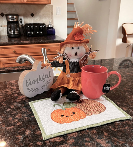 Happy Pumpkins Autumn Mug Rugs, - approx 8"x 10" with complete Instructions -