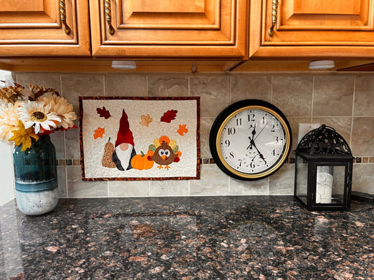 Gnome & Turkey Bar Rugs or small wall quilt - Happy Thanksgiving Autumn - approx 12"x 17"