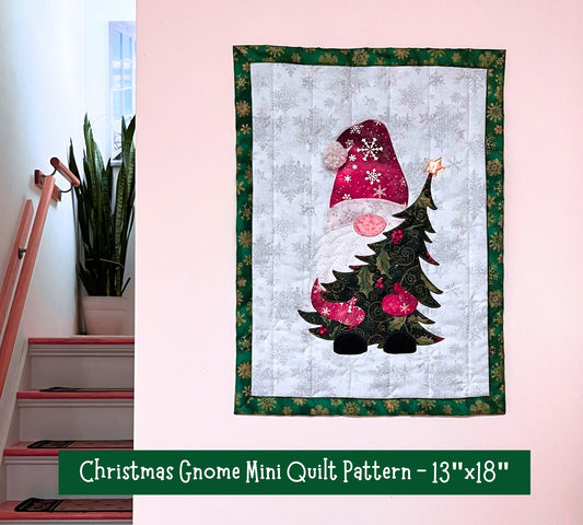 Christmas Gnome Mini Quilt - Complete Instructions, and Illustrations are included.
