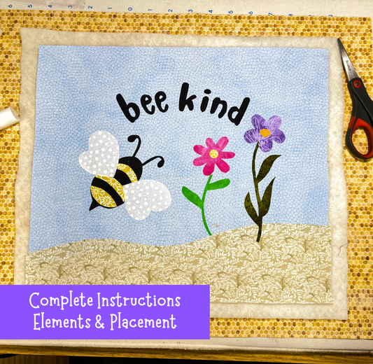 Bee Kind Mini Quilt - Mug Rug - approx 12"x 14" - complete Instructions - Digital Instant Download Pattern